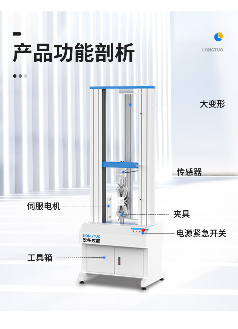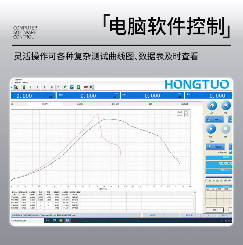 塑料雙臂電子拉力機(jī)HT-140SC具有更寬廣準(zhǔn)確的加載速度和測力范圍,對(duì)載荷、變形、位移的測量和控制有更高的精度和靈敏度,具有應(yīng)力-應(yīng)變、力量-位移、力量-時(shí)間、強(qiáng)度-時(shí)間等模式功能;可求出大力值、抗拉強(qiáng)度、彎曲強(qiáng)度、壓縮強(qiáng)度、彈性模量、斷裂延伸率、屈服強(qiáng)度等參數(shù),適用于拉伸、壓縮、剝離、撕裂、剪切…等力學(xué)性能試驗(yàn)及分析。